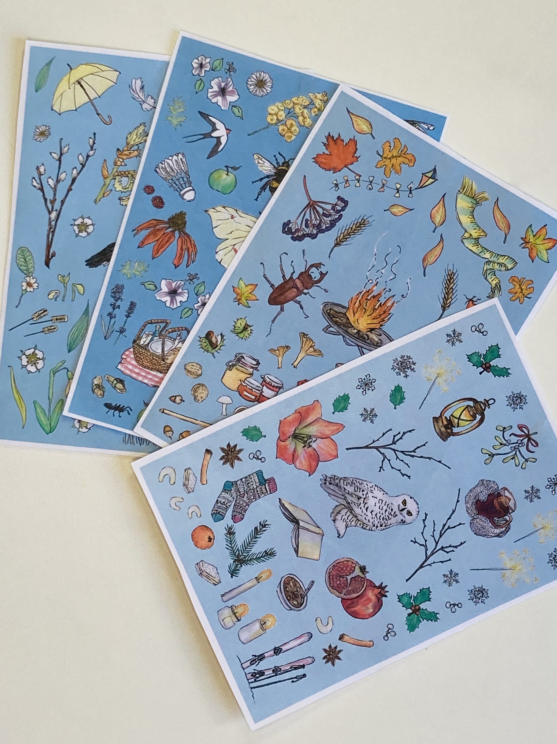 postcards and sticker cards for each season